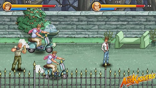 In The Asskickers, this margin for error is much slimmer, requiring that players line up more precisely with enemy sprites in order to engage them. This does allow for somewhat more technical combat, but the player's faster movement speed also makes it more difficult to line up attacks, and makes enemy characters seem more flat than those found in other brawlers.
